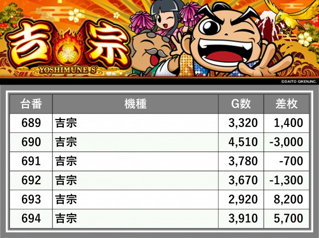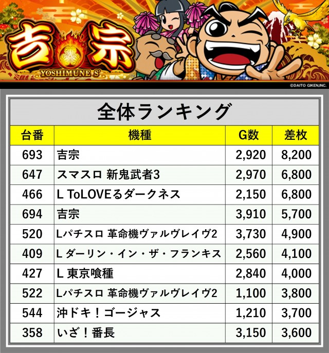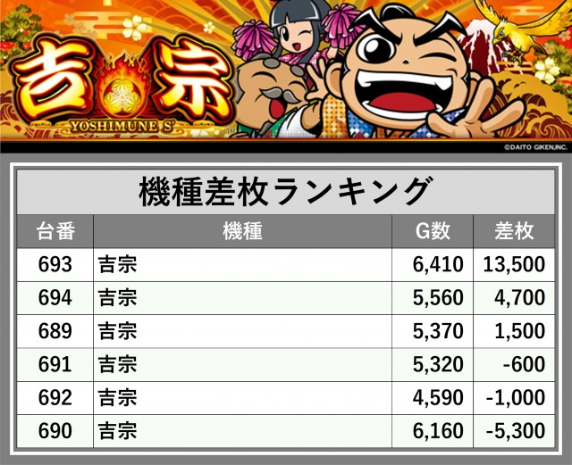 厳選された取材対象機種をはじめ、その他スロット全体から好記録が飛び出した!プレイヤーが楽しんだ1日を下記データにて振り返ってみて欲しい。