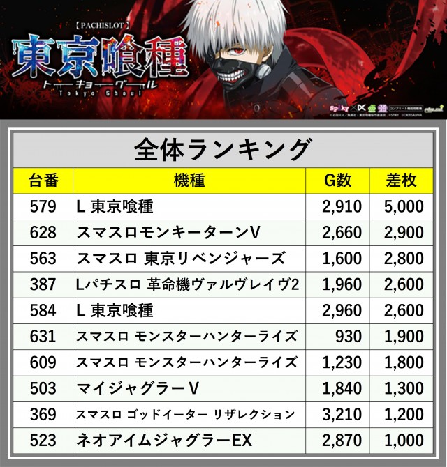 ※差枚数順に掲載しています