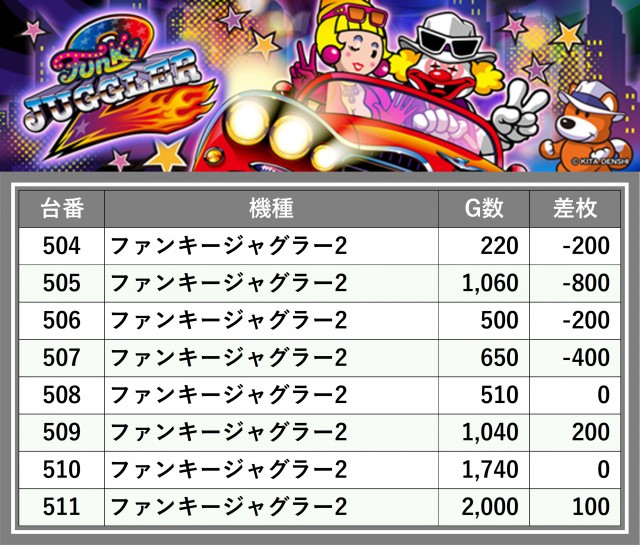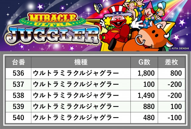 厳選された取材対象機種をはじめ、その他スロット全体から好記録が飛び出した!プレイヤーが楽しんだ1日を下記データにて振り返ってみて欲しい。