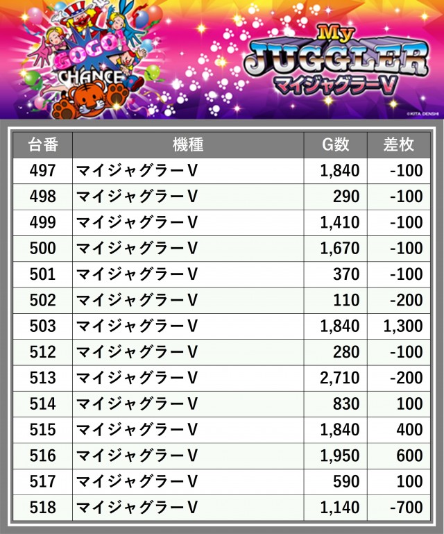 ※台番順に掲載しています