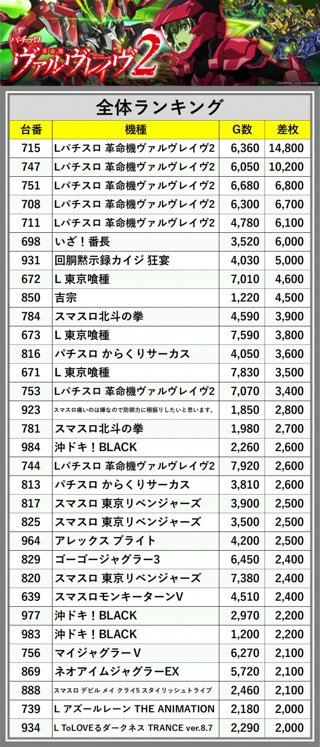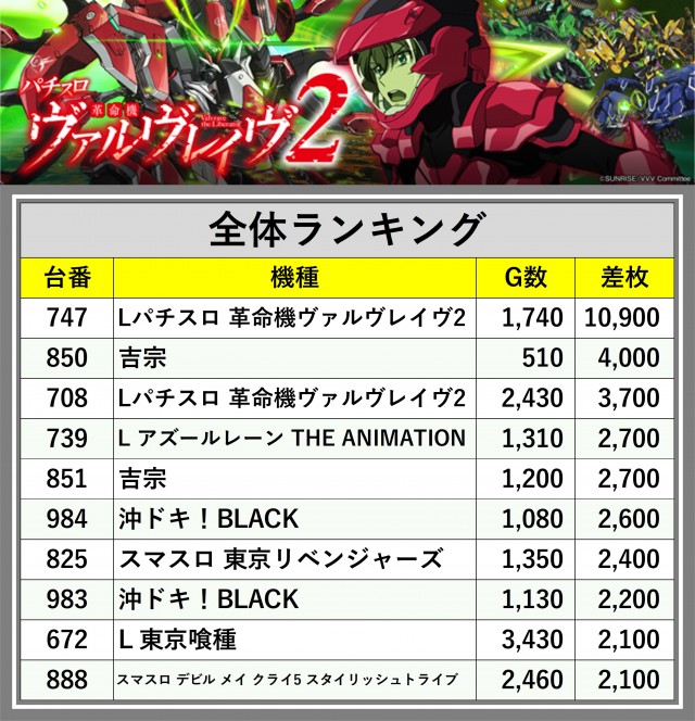 厳選された取材対象機種をはじめ、その他スロット全体から好記録が飛び出した!プレイヤーが楽しんだ1日を下記データにて振り返ってみて欲しい。