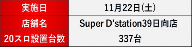 11月22日(土)Super D'station39日向店にて、DMMぱちタウンの新感覚取材「スロセレ」を実施。