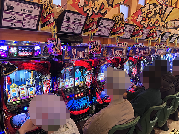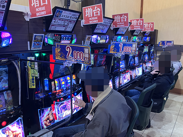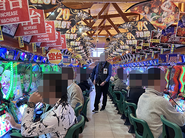 プレイヤーでにぎわう店内を見渡すと、パチンコ・パチスロともに明るい雰囲気が漂っていた。