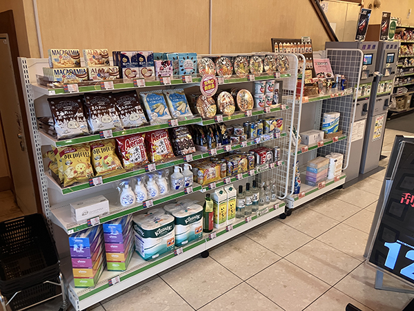 景品コーナーは豊富な品揃えで、お菓子やインスタント食品など様々なアイテムが用意されていた。
