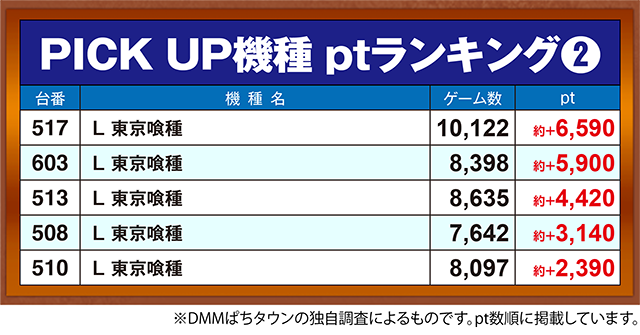 「L 東京喰種」では、517番台が約+6,590pt。