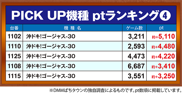 「沖ドキ!ゴージャス-30」も多くの台が約+3,000pt超。