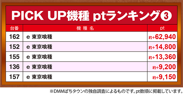 「e 東京喰種」の162番台が約+62,940pt。
