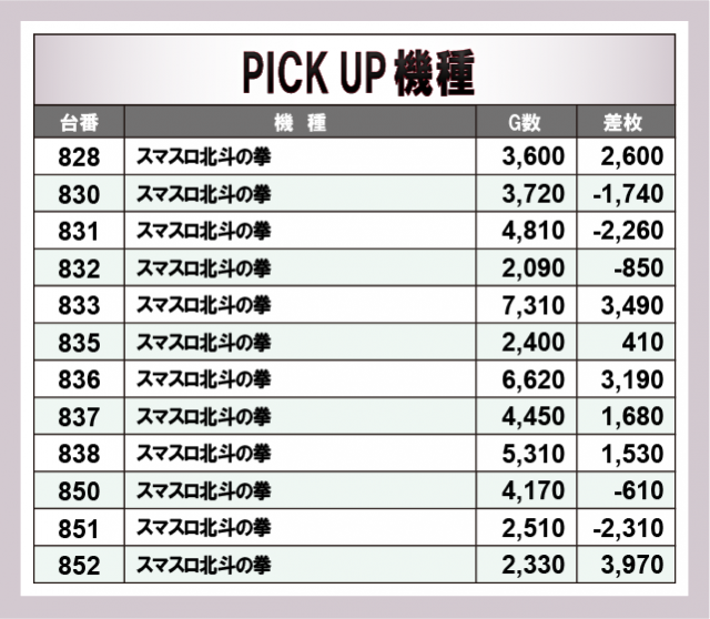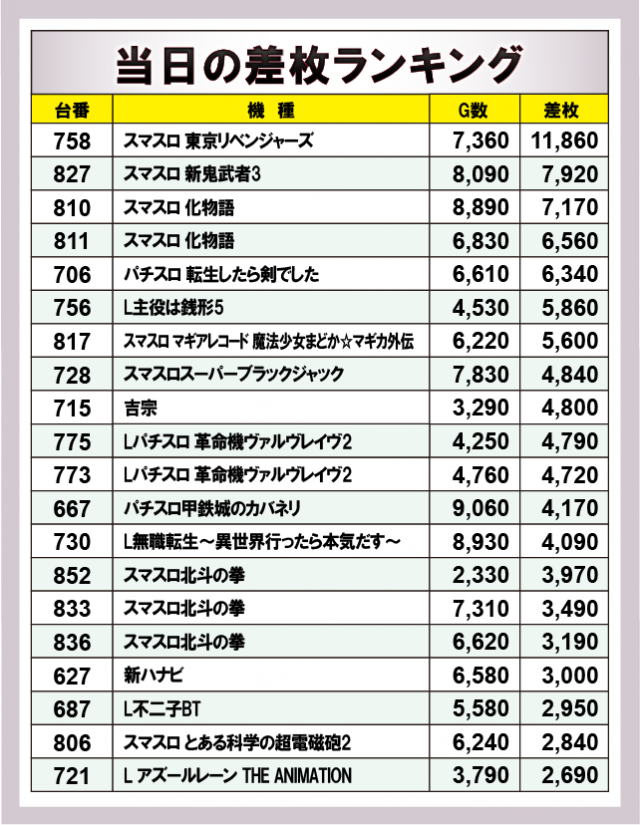 ※差枚数順に掲載しています。