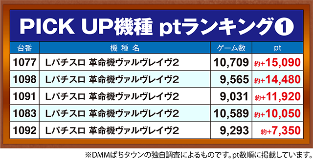 「Lパチスロ 革命機ヴァルヴレイヴ2」の1077番台が約+15,090pt!