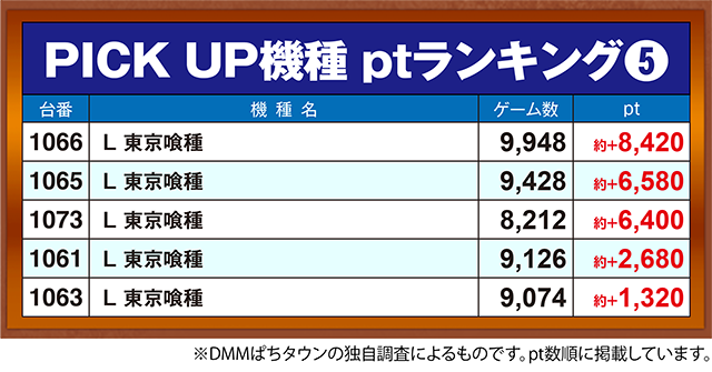 複数台が約+6,400pt以上となった「L 東京喰種」。