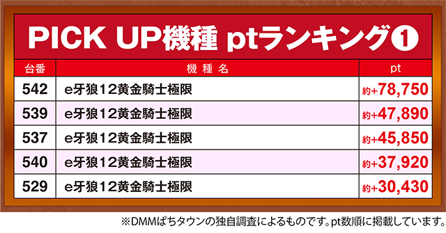 「e牙狼12黄金騎士極限」の542番台が約+78,750pt!