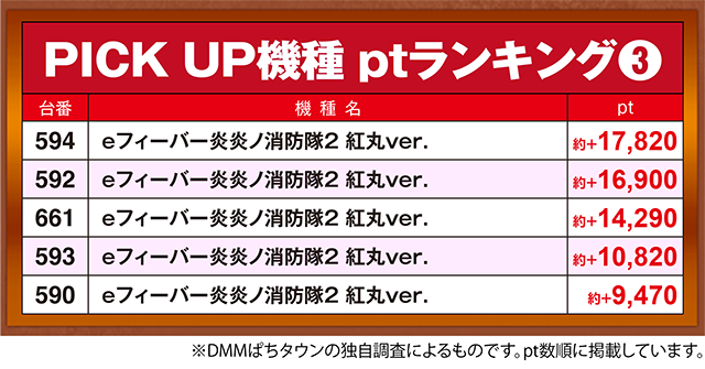 「eフィーバー炎炎ノ消防隊2 紅丸ver.」では、594番台が約+17,820pt。