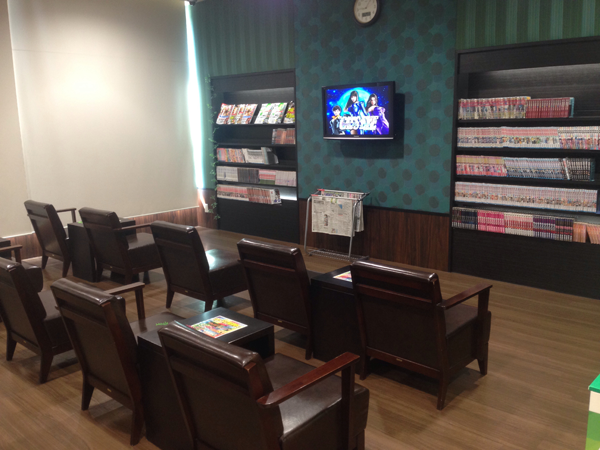レストコーナーには新聞や豊富に揃った漫画本が並んでおり、休憩中や待ち時間なども快適に過ごすことができる。