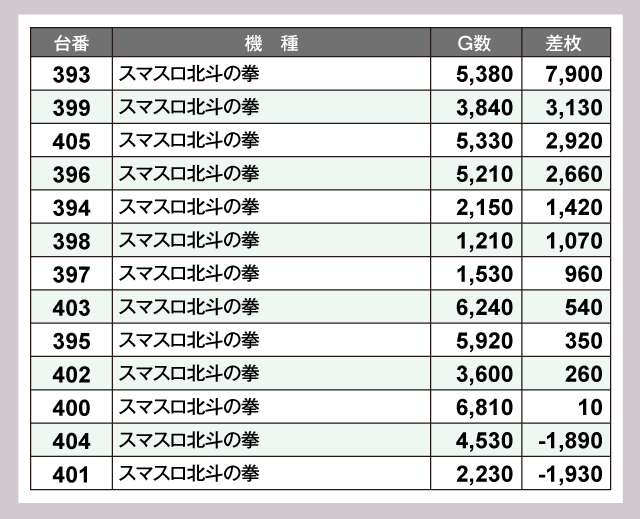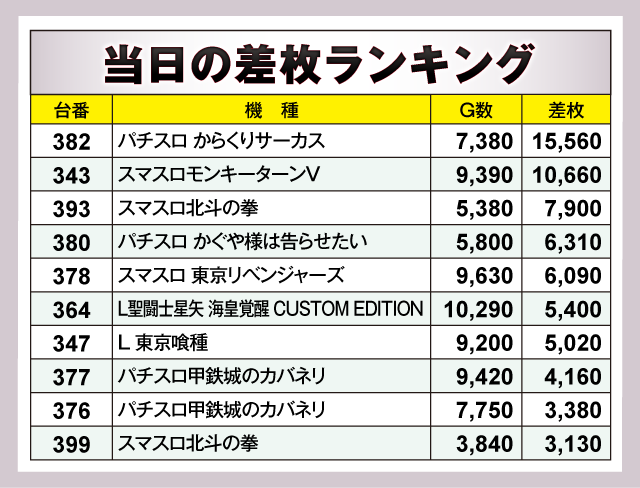 当日差枚ランキング