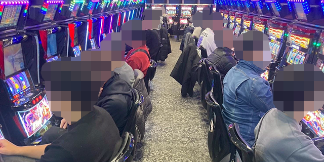 8月以来、久しぶりの開催となる「ARROW松原店」の「ARROW THE REAL取材」。朝からこの日を待ち望んでいたプレイヤーが190人も集まり、開店を心待ちにする様子がうかがえた。店内を見ると、スロットコーナーの盛り上がりがとくに大きかったようだ。