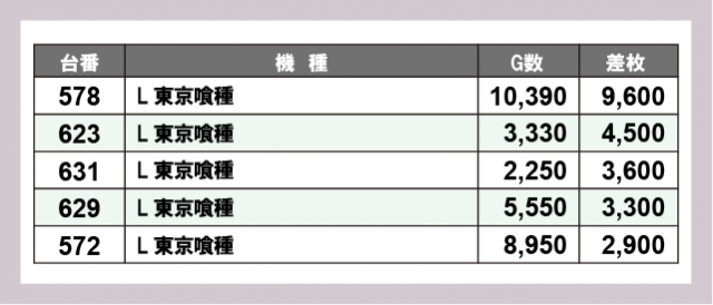 ※差枚数順に掲載しています