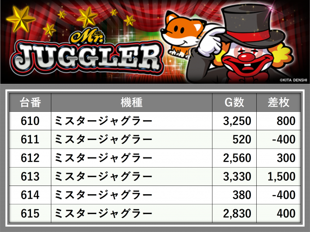 厳選された取材対象機種をはじめ、その他スロット全体から好記録が飛び出した!プレイヤーが楽しんだ1日を下記データにて振り返ってみて欲しい。