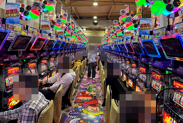 「ゴーゴージャグラー3」や「ハッピージャグラーVⅢ」にも遊技を満喫しているような姿があり、にぎわっていた。