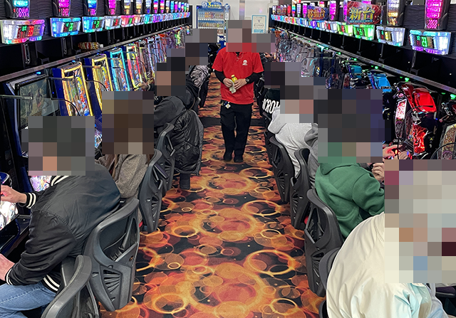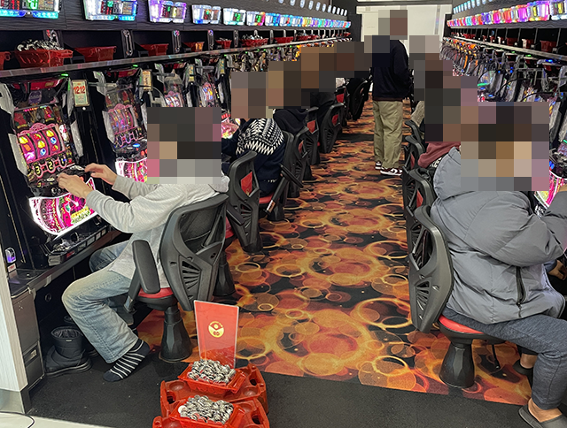 笑顔で遊技をおこなっているプレイヤーが多く、活気に包まれていた「ビーディー亀田店」。