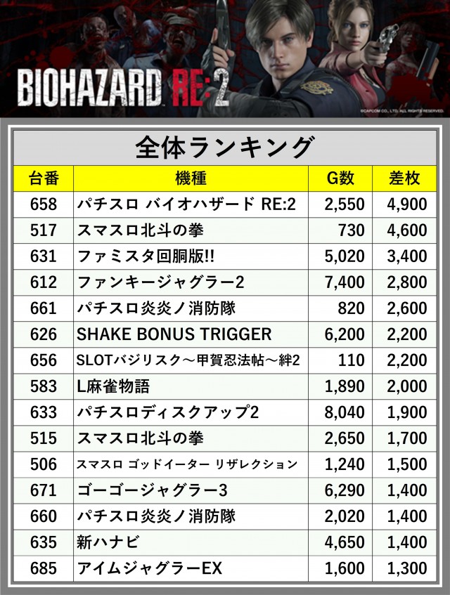 厳選された取材対象機種をはじめ、その他スロット全体から好記録が飛び出した!プレイヤーが楽しんだ1日を下記データにて振り返ってみて欲しい。
