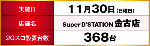 Super D’STATION金古店 差枚ランキング(11月30日)