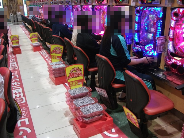 16時過ぎの4円パチンコでは「CR真・花の慶次」の活躍が目立ち、満足そうな表情を浮かべているプレイヤーも多数。