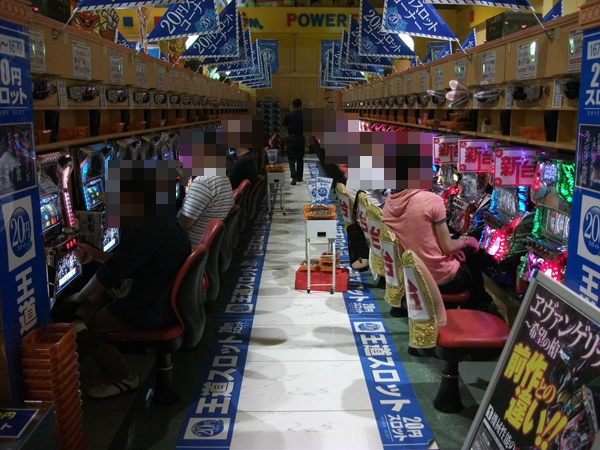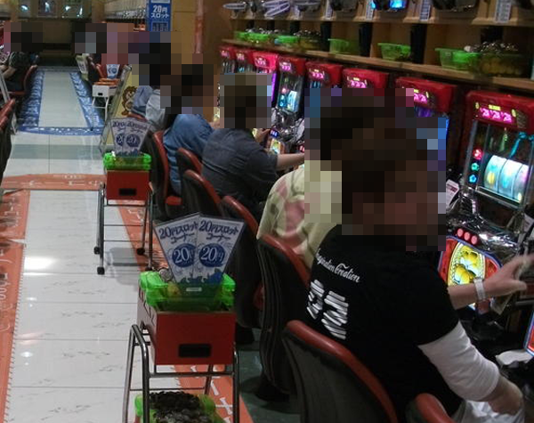 じっくりと遊ぶこともできる5円パチスロにも満足そうなプレイヤーが多数。