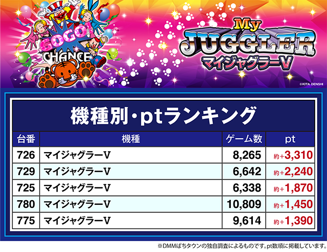 「マイジャグラーⅤ」の726番台が約+3,310pt!