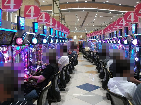 4円パチンコや20円パチスロのほか、1円パチンコや8円パチスロなどの低貸し玉料金も盛況。空き台に札が刺さっているため、高稼働ながら空いている台を探しやすく、プレイヤー目線のサービスが整っていることもうかがえた。