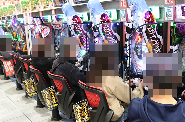 1円パチンコの「新世紀エヴァンゲリオン~未来への咆哮~」が、ほぼ満席となるほどに人気。