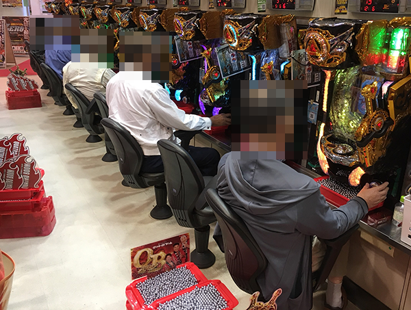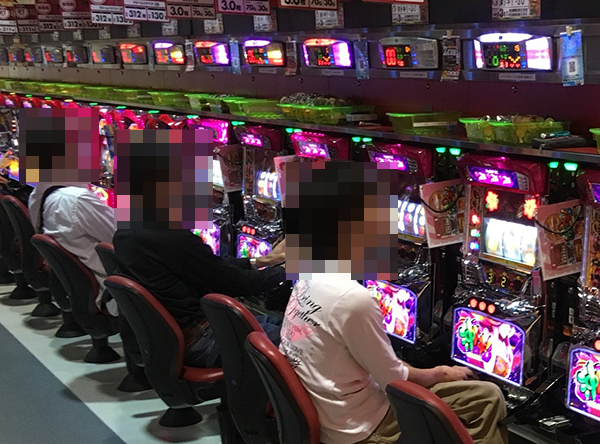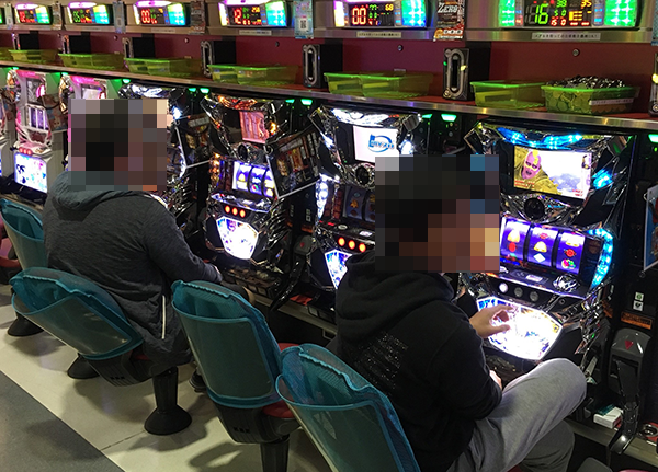 『バジリスク~甲賀忍法帖~絆』と『押忍!番長3』でも、楽しそうなプレイヤーを発見。遊技をおこなう姿は楽しげであった。