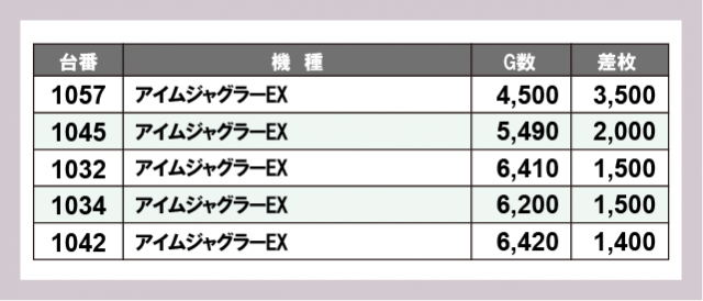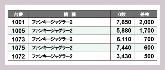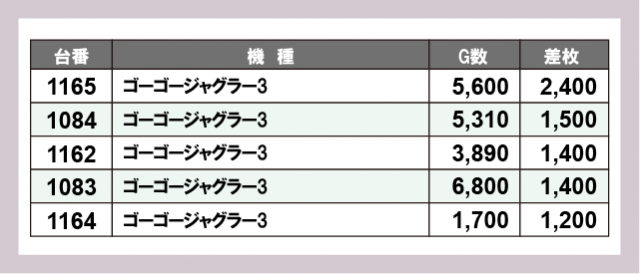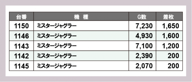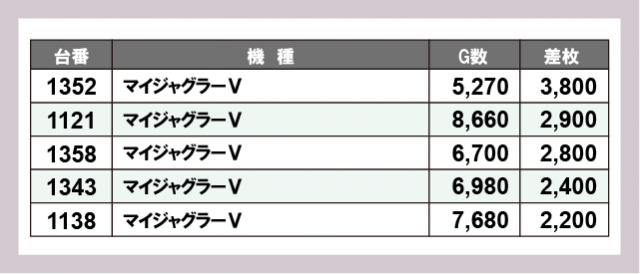 ※差枚数順に掲載しています
