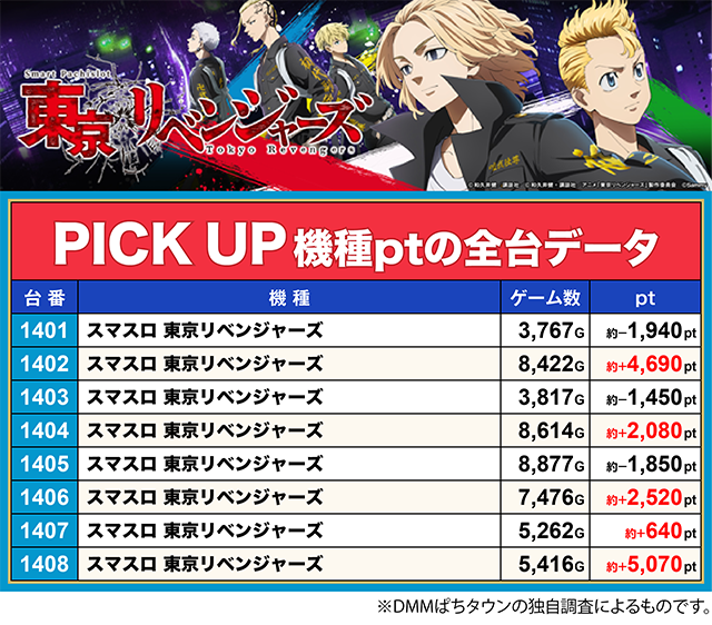 「スマスロ 東京リベンジャーズ」も4台が約+2,000pt以上で、約+5,000ptを上回った台もあった。