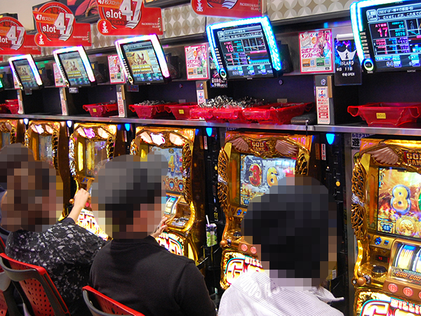 さらに、「バジリスク~甲賀忍法帖~絆」や「パチスロ北斗の拳 新伝説創造」、「戦国パチスロ花の慶次 ~天を穿つ戦槍~」なども、空き台が見当たらないほどの人気だった。