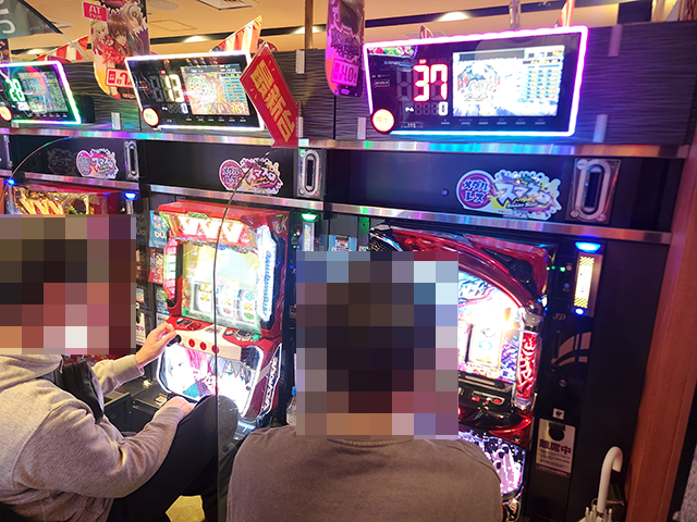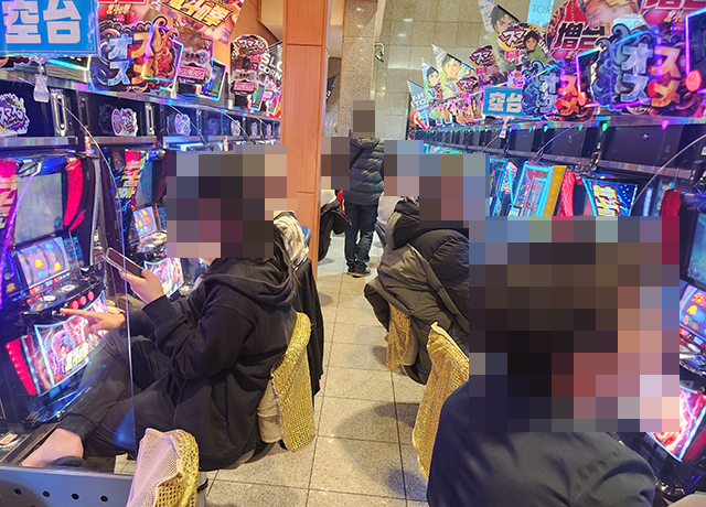 14時半ごろのパチスロは、「スマスロ北斗の拳」がほぼ満席となるなど、スマスロが好評であった。
