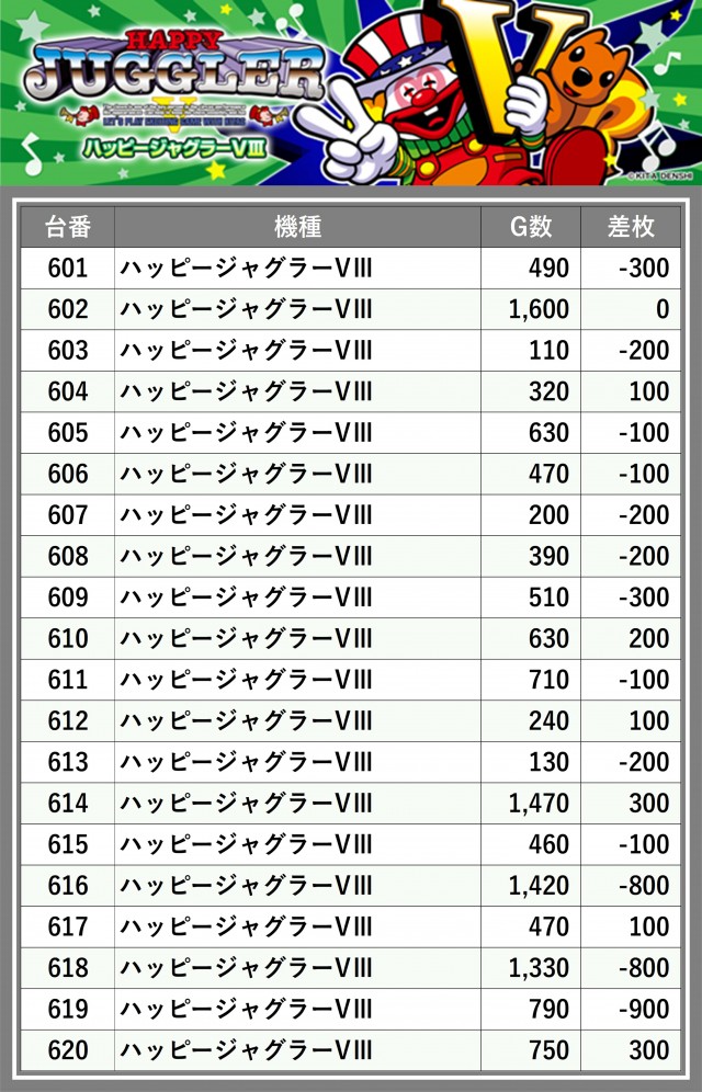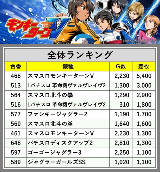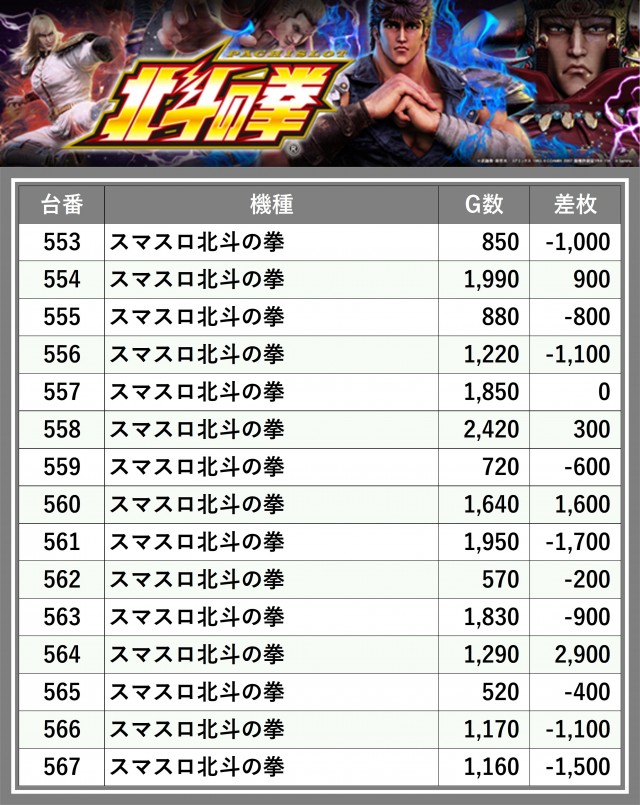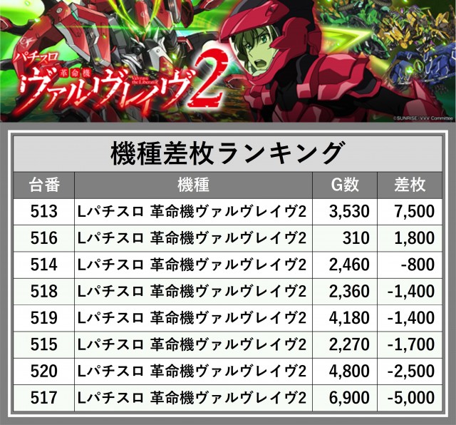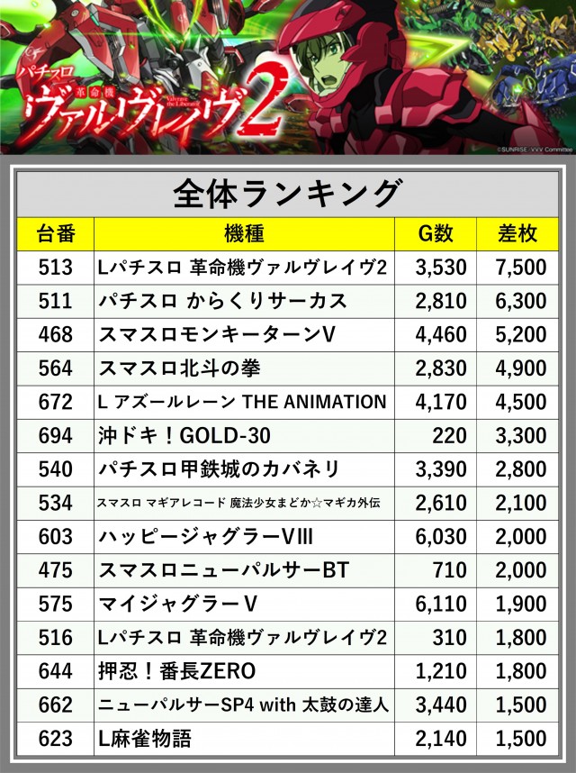 ※差枚数順に掲載しています