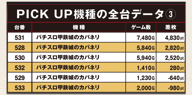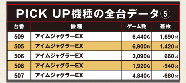 高稼働を残した509番台、505番台では4桁ptのプラスをマークするなど、5台中3台が勝利を飾った。