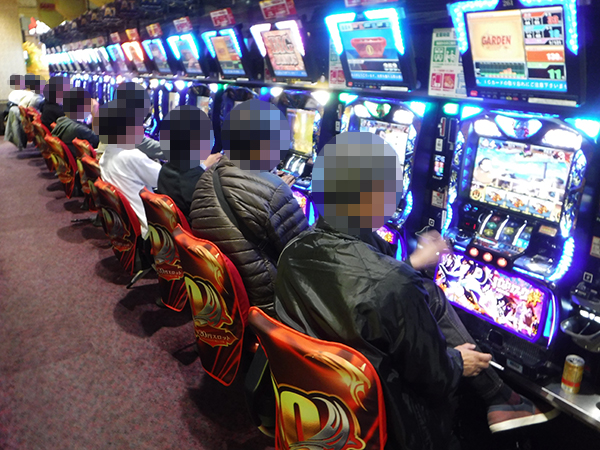 16時過ぎの1000円/47枚パチスロを見てみると、「バジリスク~甲賀忍法帖~絆」や「押忍!番長3」がほぼ満席状態となり、プレイヤーの活躍でひときわ目立つ状況となっていた。