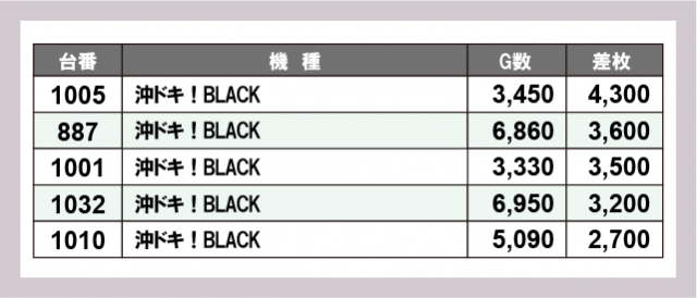 ※差枚数順に掲載しています