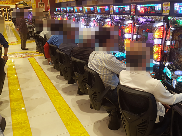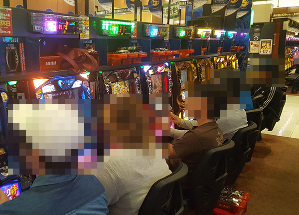 14時半ごろの4円パチンコでは、「CRぱちんこ必殺仕事人Ⅴ」や「CR弾球黙示録カイジ沼3」、「CR世界でいちばん強くなりたい!」などがにぎやかなムード。機種の魅力を堪能しているためか、プレイヤーたちが満面の笑みを浮かべていたことも覚えている。