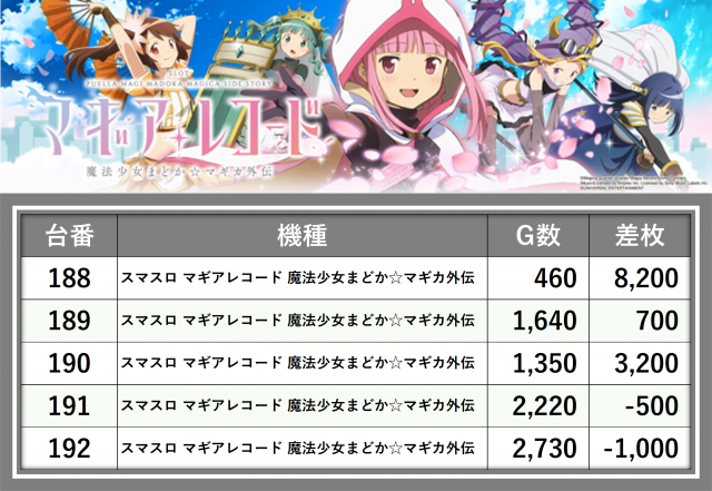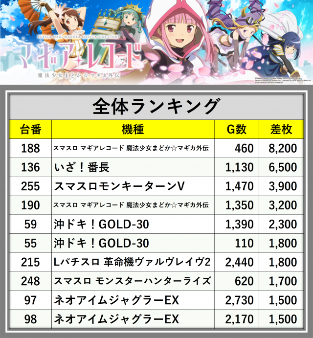 ※差枚数順に掲載しています