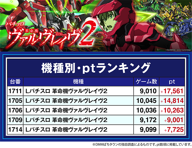 「Lパチスロ 革命機ヴァルヴレイヴ2」の3台が+10,000pt以上!!