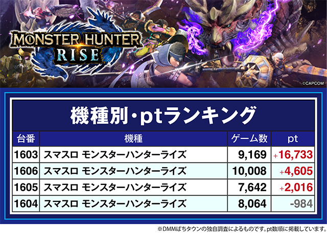 「スマスロ モンスターハンターライズ」は4台中3台が+2,000ptオーバー。