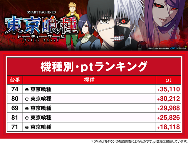 「e 東京喰種」の74番台と80番台が+30,000ptオーバー!!