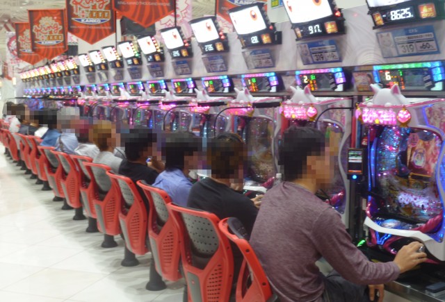 広々としたホールは全台パーソナル計数機が導入されており、満席のシマでもユーザーは皆ゆったり快適に遊技を楽しんでいた。