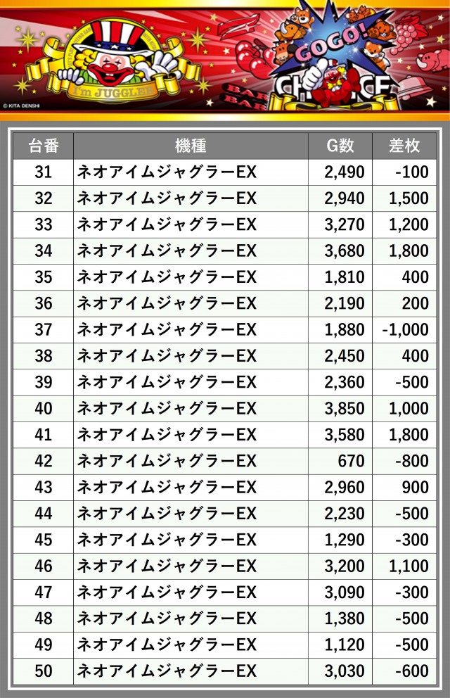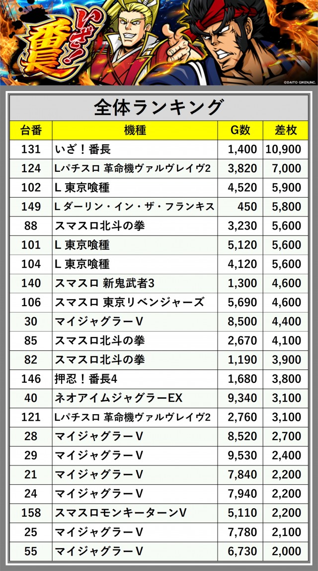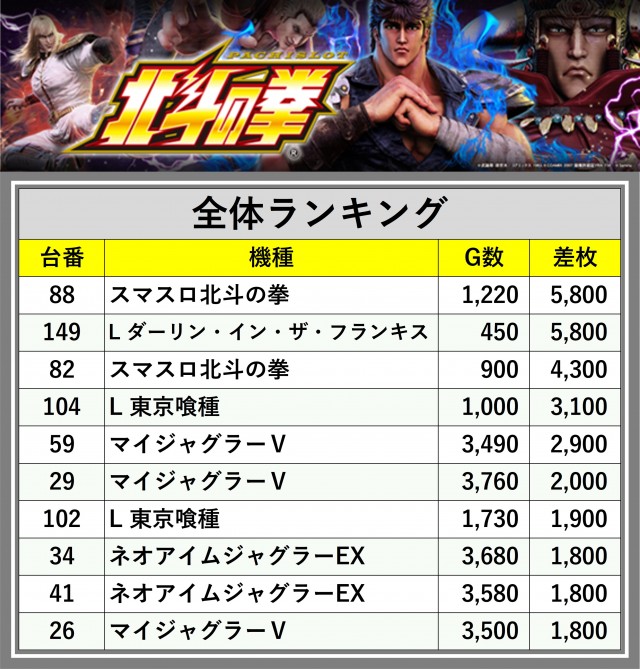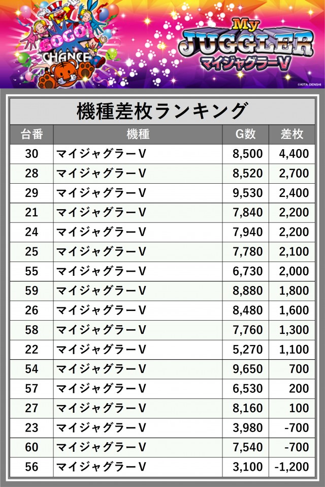 ※差枚数順に掲載しています