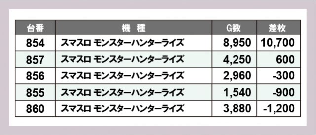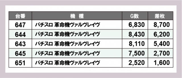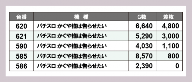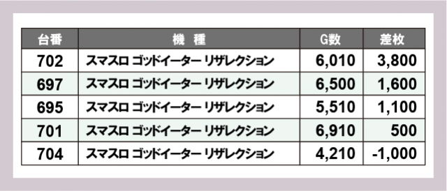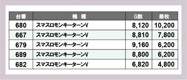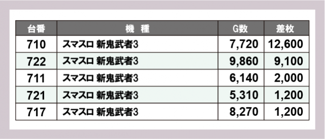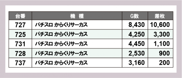 ※差枚数順に掲載しています