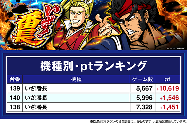 「いざ!番長」も設置されている3台のすべてがプラスとなり、139番台は+10,000ptオーバー。