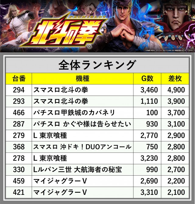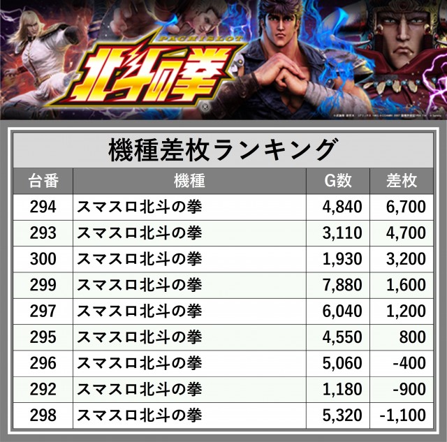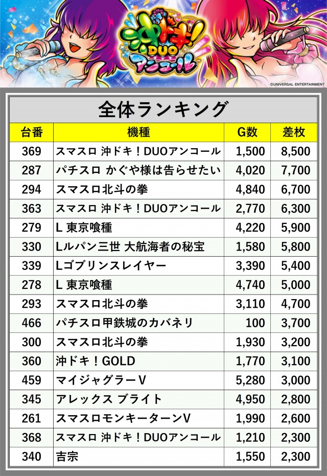 ※差枚数順に掲載しています