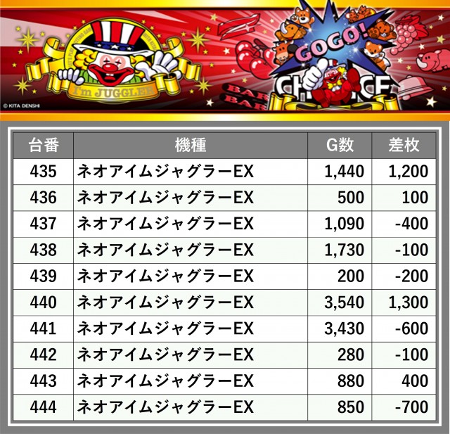 厳選された取材対象機種をはじめ、その他スロット全体から好記録が飛び出した!プレイヤーが楽しんだ1日を下記データにて振り返ってみて欲しい。